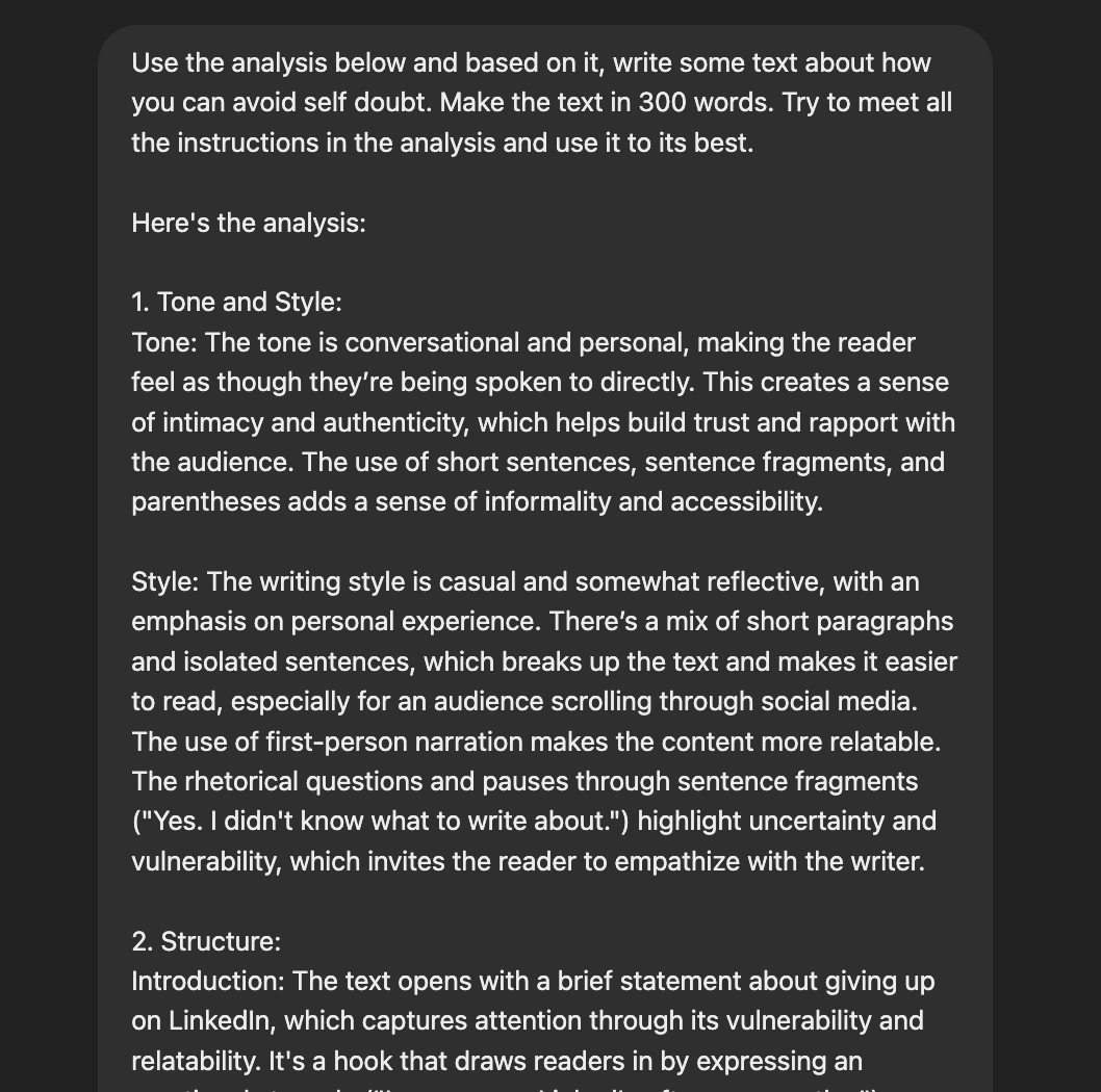 Train a GPT on these instructions (I mean the analysis) and ask it to follow them every time it writes.