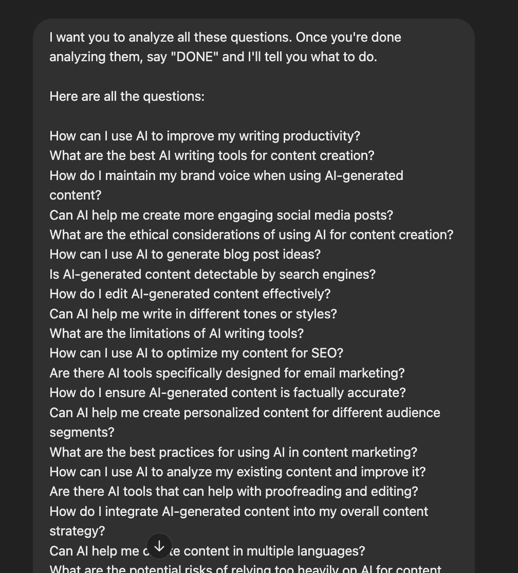 The only thing here you’ll get from ChatGPT is “DONE”.