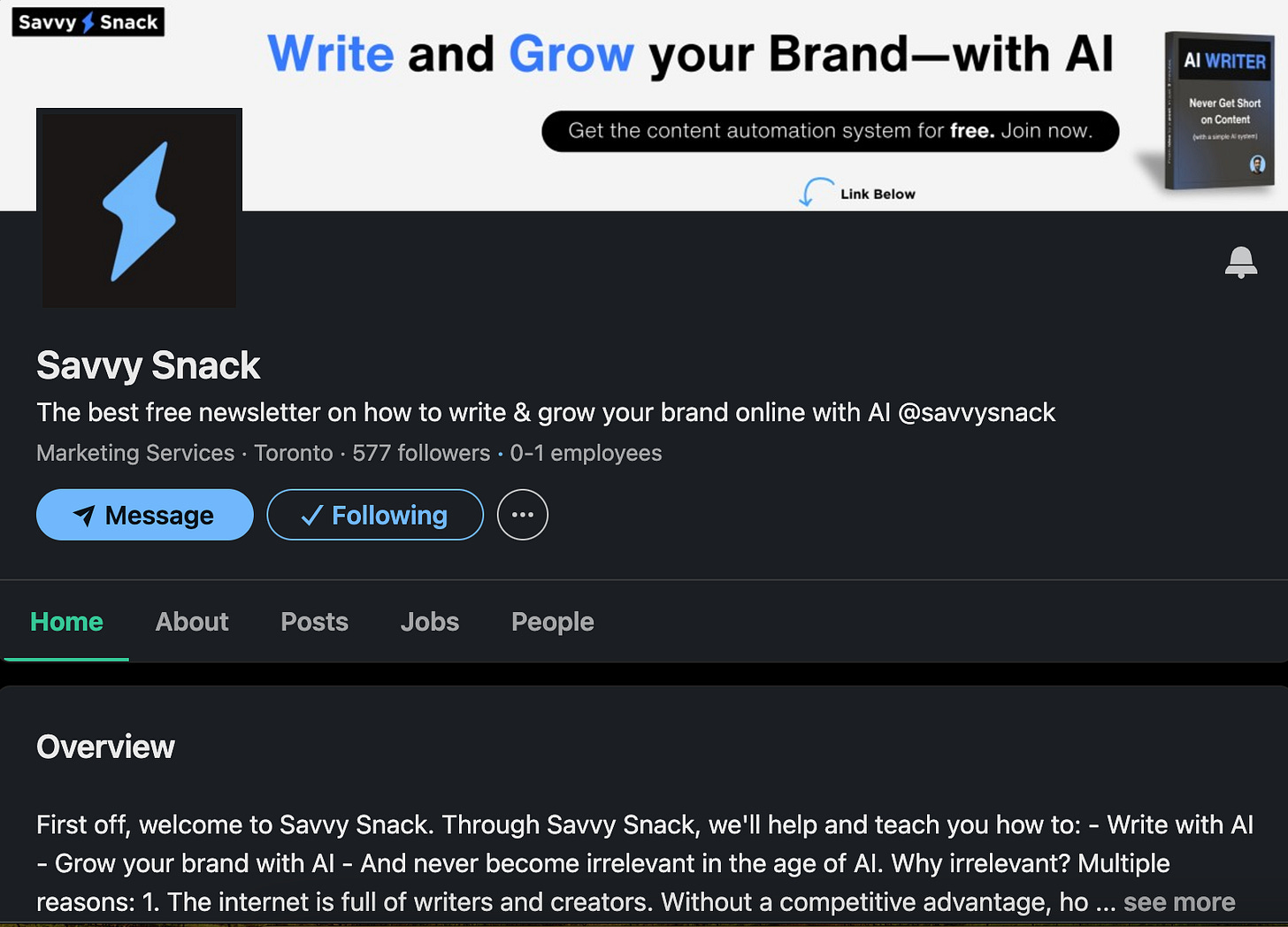 I have a linkedin business page for my newsletter. And my newsletter is all about helping people write and grow their brand with AI.