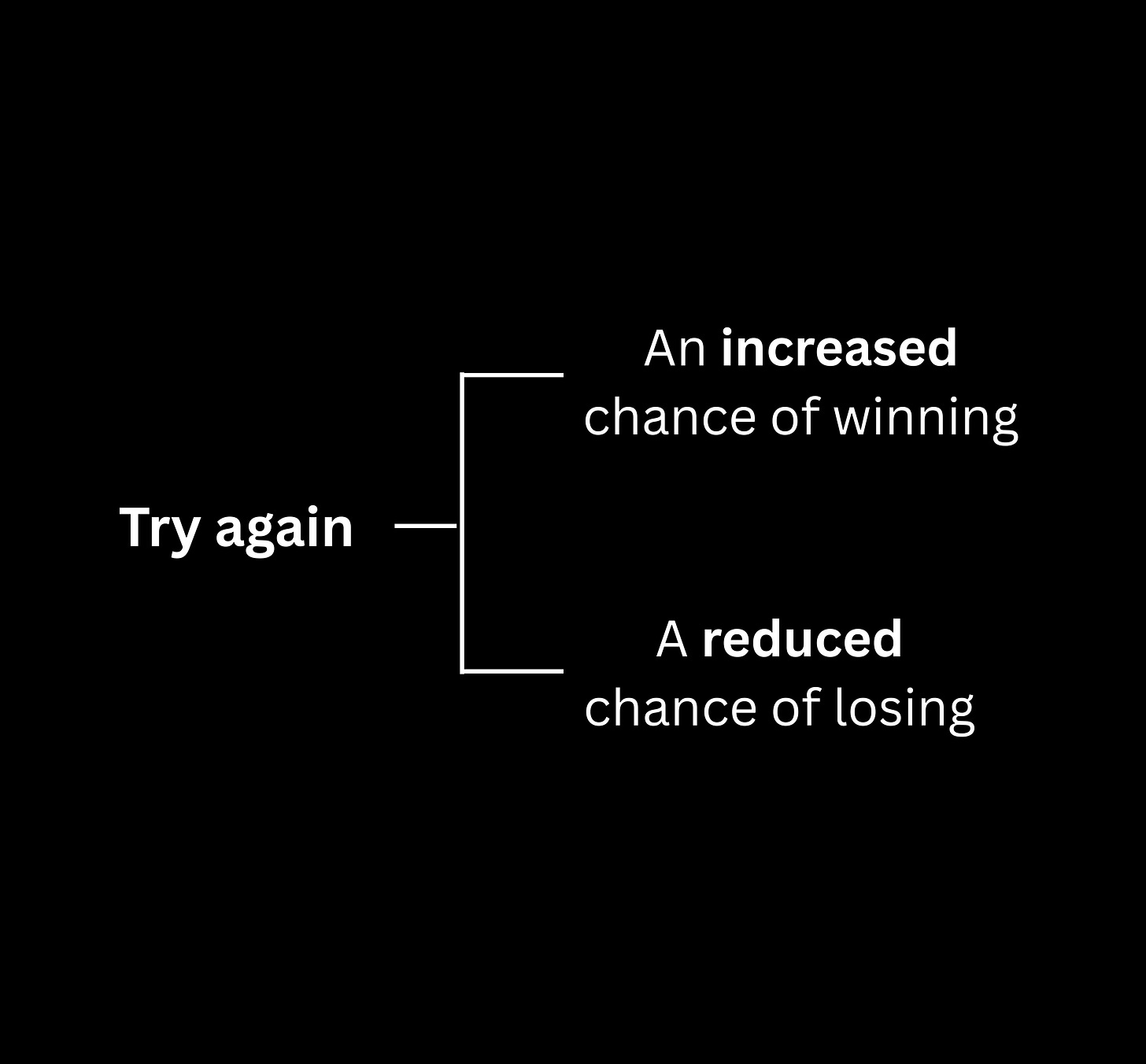 Your chance of winning increases only when you try, even when you fail the first time.